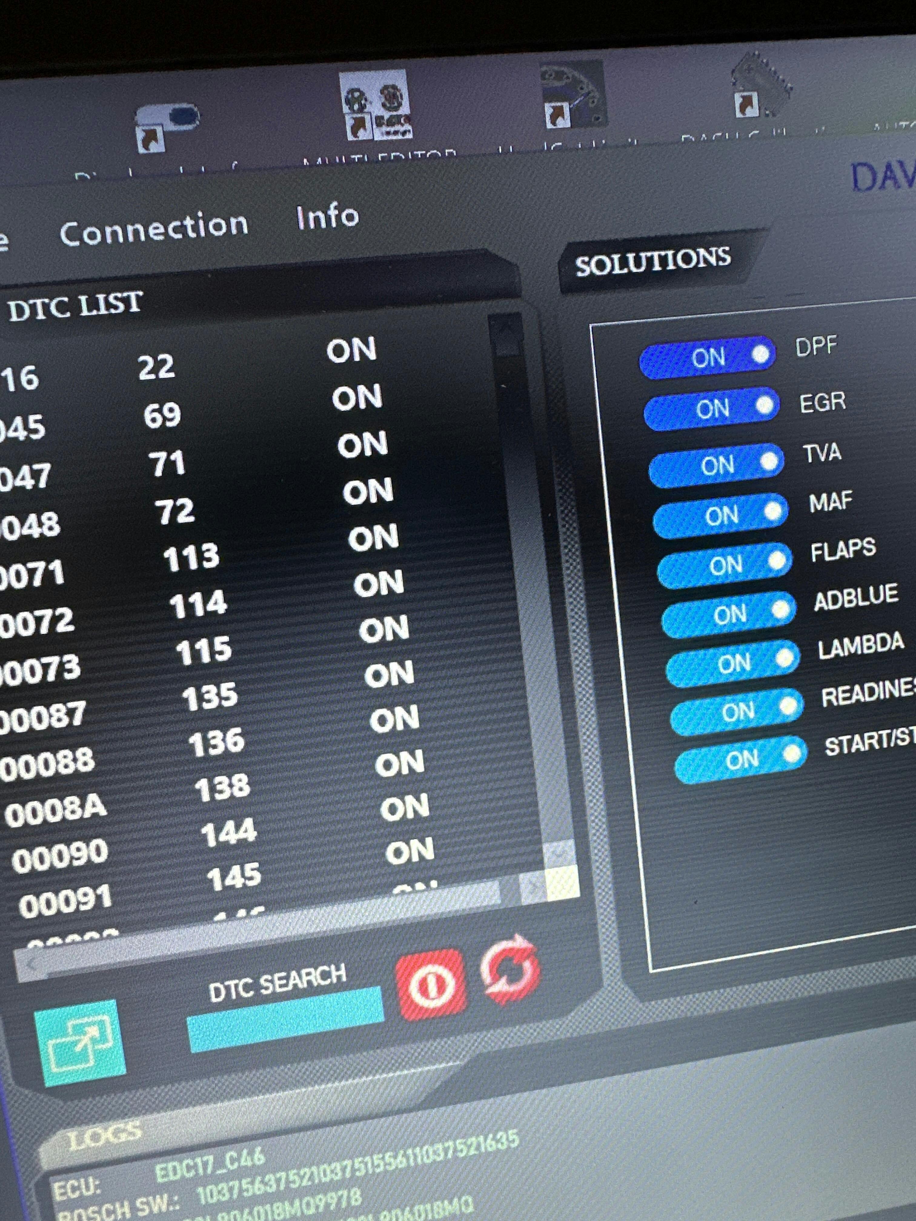MARCA: VAG ECU: BOSCH EDC17CP54 MARCA: VAG ECU: BOSCH EDC17CP64 MARCA: VAG ECU: BOSCH EDC17CP74 MARCA: VAG ECU: BOSCH MD1CS014 *************** BMW ************** MARCA: BMW ECU: BOSCH EDC17C50 MARCA: BMW ECU: BOSCH EDC17C56 MARCA: BMW ECU: BOSCH EDC17CP45 MARCA: BMW ECU: BOSCH MDG1_MD1CP002 MARCA: BMW ECU: BOSCH MDG1_MG1CS001 *************** FORD ************** MARCA: FORD ECU: BOSCH EDC17CP05 *************** ALFA ************** MARCA: ALFA ECU: BOSCH EDC16C39 EURO4 MARCA: ALFA ECU: BOSCH EDC16C39 EURO5 MARCA: ALFA ECU: BOSCH EDC16C8 MARCA: ALFA ECU: BOSCH EDC17C69
